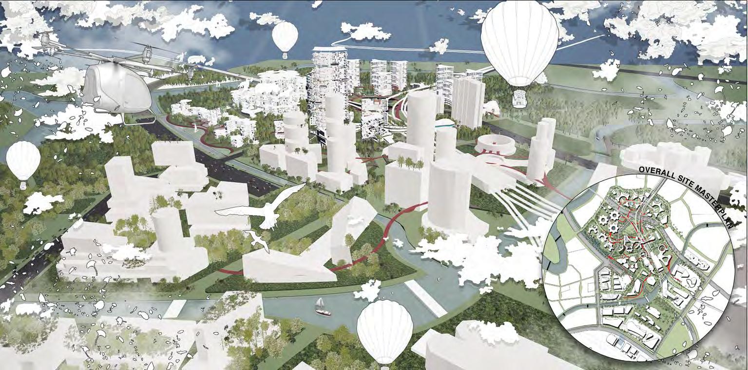 nery into the urban fabric, as well as provide a living space for humans and animals to co-exist. Further West, the adaptive reuse of obsolete logistical infrastructure into new social spaces like an art district culminates as an attempt to revive a cultural affinity to the river. The project stands as a conscious effort to heal the existing landscape and to recalibrate ecotones. It also functions as a starting point from which a larger, rhizomatic ecosystem can be cultivated, of which a dynamic synthesis of biophilia with the urban fabric would enable greater resilience towards climate change.