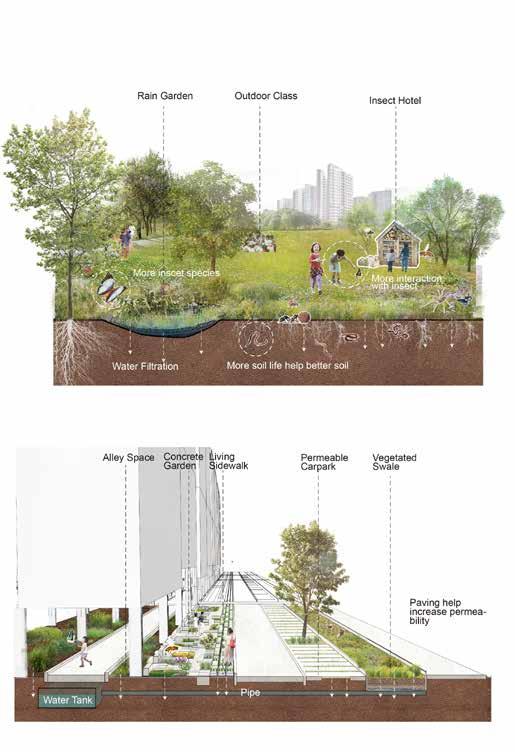 In such an era of rapid urbanization, the speed of urban renewal makes it easy for us to ignore natural factors. In this studio project, we try to plan and design the city from the perspective of landscape Urbanism. We start thinking from a micro perspectivethe natural factors of the site itself, link it to the macro social issues in Singapore as a whole and finally get our vision and strategy. I also benefited a lot from learning and communicating with other groups during the course. Groups with different themes negotiate and compromise with each other, and finally form a unified master plan. This way of designing is something I haven't tried before. Although our group had a hard time advancing the plan, I also learned a lot of new theoretical knowledge form other fieldsduring this process . It also made me see more potential in landscape architecture.