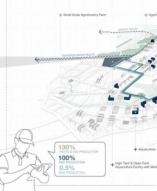 Master planning at a macro town-level scale proved to be a challenge this semester. With overlapping ideas, areas of focus, similar design interventions, and topics, resulted in a to-and-fro negotiation, of project hierarchy and importance, that finally led to the overall masterplan concept. The discussion pushed me to initiate conversations and constantly communicate my ideas between the different groups so that we can reach an agreement as well as better understand each other’s projects and objectives. Throughout the semester from consultation to interims, I am able to see the process and commendable works of my peers and studio mates which inspired me to push harder and try designing outside of my comfort zone, be it graphically or systematically. There is much room for improvement if more time were given, such as how we approach our topic, not limiting our design to farming, and possibly exploring further on the aquatic species.