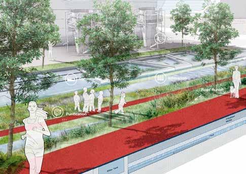 Studio 1’s concept masterplan is titled “Happy & Resilient PLAB” and it comprises of strategies with the following headings: LAND AND SOIL MANAGEMENT, WATER MANAGEMENT, RECYCLED CONSTRUCTION MATERIAL, WATERSHED PROTECTION WITH AQUATIC ANIMALS, LANDSCAPE CONNECTIVTY WITH BIRDS.