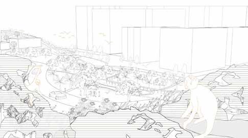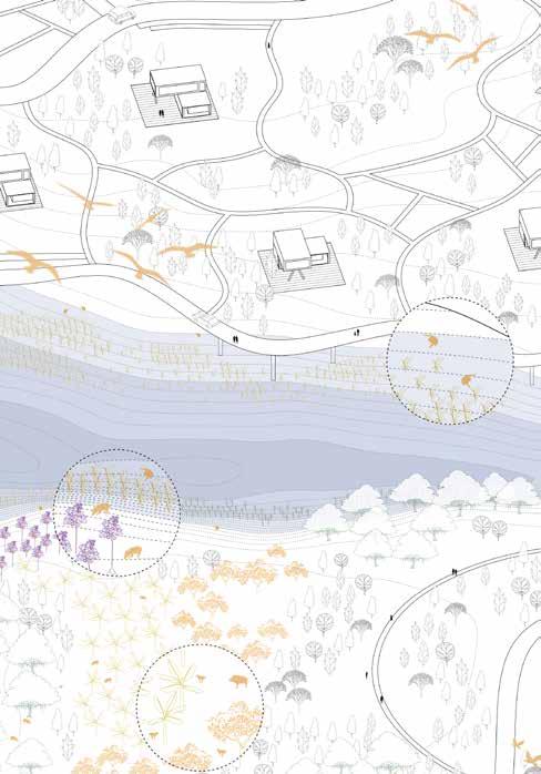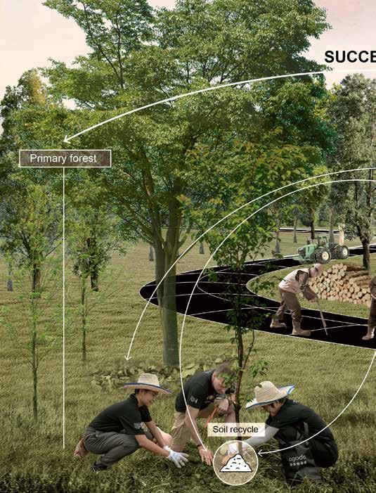 Studio 2’s concept masterplan is titled “Regenerative PLAB” and it comprises of strategies with the following headings: CO-BREATHING WITH SOIL, SEED DISPERSAL AND ANIMALS, WILDLILFE ECONOMIES, NATURE AS A CARBON BANK, PRODUCTIVE LANDSCAPE BUSINESSES.