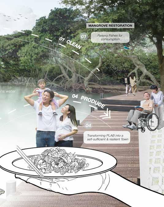 Due to the huge scale and coordination amongst groups with very varied focuses, this studio project was challenging. The negotiation process was fascinating because it allowed us to see the same area of land through new lenses and understand the requirements from several angles. Our group topic proved to be more difficult than I had anticipated, as water is a fluid element with a lot to consider during the design process, as one stage of protection can severely effect other sections. Our group envisions PLAB to be a selfsustaining town model for future Singapore, but we are limited by farming and growing techniques that require a large piece of land and appear to have too much compromise to achieve our goal; instead, a more balanced and multi-functional land should be proposed in future projects. Finally, I would like to express my gratitude to my groupmates for their unwavering support during this process.