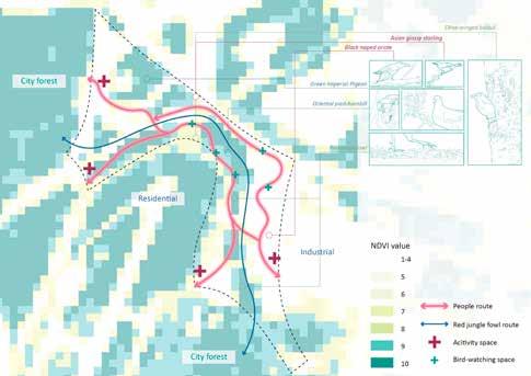 Under the topic of landscape connectivity with birds, I began to rethink the relationship between nature and people. What nature can offer to people is as important as how people should protect it, as this determines whether the designer's ideas will attract the people who will pay for them. Human attitudes towards nature represent an interesting duality, between the human desire to heal and refresh in nature and to satisfy their curiosity, and the abhorrence of the dangers that nature can pose. It therefore takes patience to strike a balance between conflicting demands. In many cases sacrifice is inevitable, but a good idea is possible to achieve the best of both worlds. Only an in-depth and detailed analysis of the interaction between man and nature will reveal more of these possibilities.