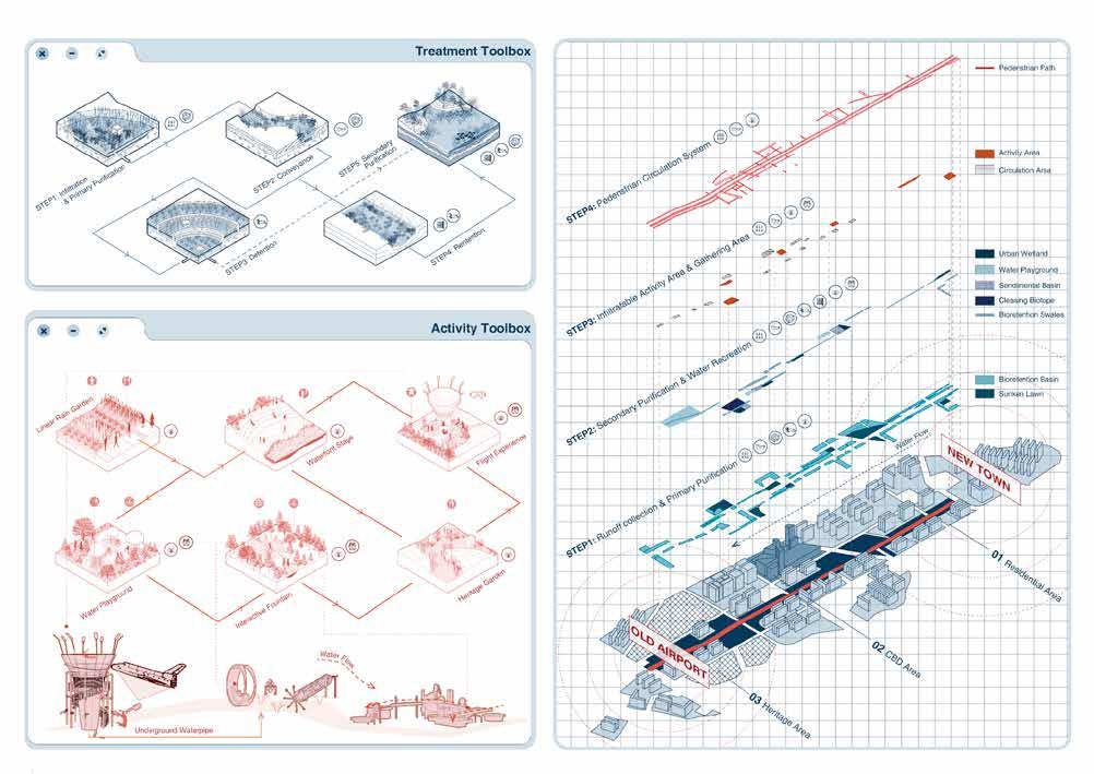 I gained a lot in the process from the field trip to PLAB in the early stage to generate strategies and finally to the derivation of design. The site investigation helped me to have a deeper understanding of the site, and brainstorming with group members inspired me to think about water management from a new perspective with more innovative approaches that integrate with technology, culture, history, and ecology.