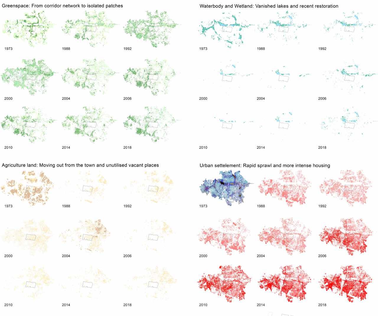 Disrupted and disconnected urban ecosystems (water, agriculture, flora and fauna) resulting from rapid urbanization have detrimental impacts on the health and wellbeing of urban citizens; particularly disadvantaged social groups. This studio developed an appreciation for design skills in landscape architecture within the city-scale context of Bangalore, one of the most rapidly urbanizing cities in India. Greater Bangalore is the administrative, cultural, commercial, industrial, and knowledge capital of the state of Karnataka. It is currently the fifth largest metropolis in India with a population of about 7 million, with a population density that increased from 10,732 to 13,392 persons per sq. km between 2001 and 2011. Rapid urbanization pushes urban infrastructure to its limits and often causes increased social inequity, but there is also increasing pressure on rural landscapes to supply the city with resources and food. This studio focused on designing productive urban landscapes—multifunctional landscapes that grow food in the city.