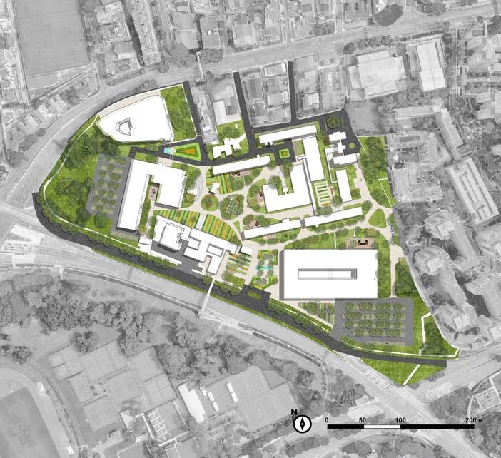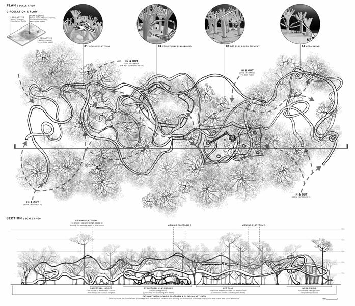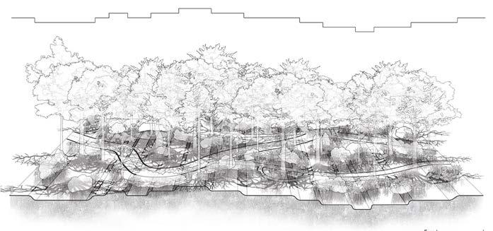 4 Section-elevation: ‘Begin in Garden’ drop-off point & entrance plaza