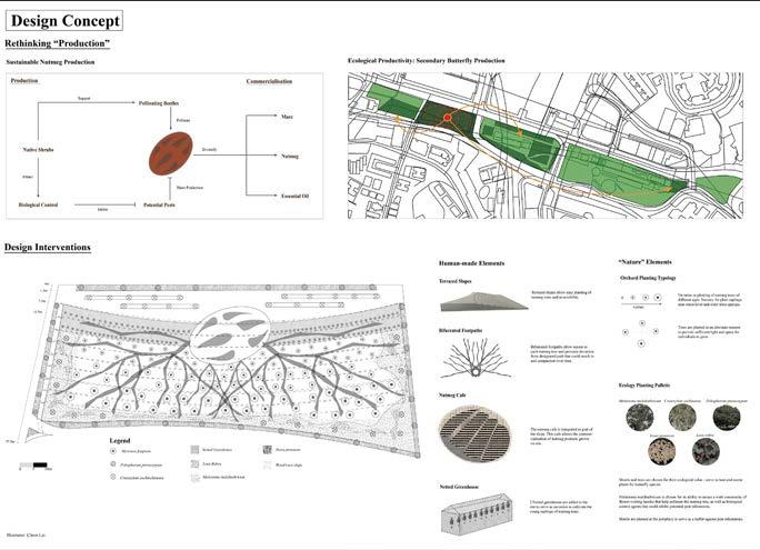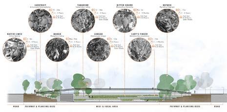 This studio re-imagined how to design green and grey spaces in Singapore as productive landscapes. We envisioned productivity to encompass edible and non-food related natural resources such as timber, traditional medicine, and other products. Students were challenged to critique the manicured lawns and trees of Singapore, to look past the veil of green walls and roofs, and to uncover the true potential of landscape architecture in bringing together multifunctional landscapes that are not only aesthetic and culturally significant, but also productive; to design productive landscapes that are ‘Grown in Singapore.’ We asked: Can multi-functional urban land uses that integrate—rather than separate— agriculture from other land uses be a critical adaptation for the sustainability of future cities? What novel design strategies should we develop, what changes in mindset do we need to inculcate, and what stakeholders do we need to engage in order to integrate diverse typologies of productive landscapes into built, ecological, and social urban systems? With an aim of envisioning better designed work, live and play environments that simultaneously tackle the need for outdoor space and productive landscapes, this studio attempted to alleviate two otherwise conflicting issues of food insecurity and land scarcity which plague rapidly urbanising cities of today.