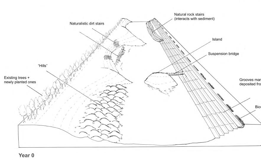 The field of landscape architecture requires a series of detailed steps to achieve successful design projects. This module developed students’ technical ability to effectively analyze and design a space with practical site engineering knowledge, legitimate, safety standards, and ideas on natural resource management. Landscape architects hold stewardship of the land as a key responsibility of the profession. Understanding design implementation process can enhance spatial sensitivity in students’ design responses along with a greater literacy in detailing.