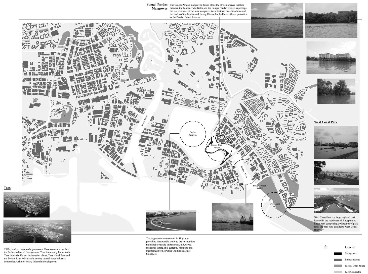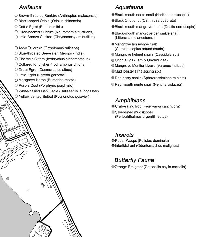 Although this remnant of mangrove forest has been designated as a ‘protected’ park space by URA plan 2014, the coastal habitats in Sungei Pandan has a high risk of extinction due to the relatively small size of the mangrove forest and development pressures by highly urbanized neighboring contexts. The forest lined much of the canalized banks of the Pandan and Jurong rivers being surrounded by factories (Jurong industrial zone), heavily used ports (Jurong port), and managed park land styled urban greenery (West Coast park). Like recent port development cases of Singapore, it has also a strong possibility to transform the port land into mixed urban development in the nearer future as similar as other cases of coastal redevelopment (Wong, 2006).
