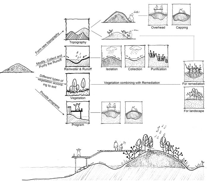 The first studio in MLA is quite different from what I learned during my undergraduate period, and it really gives me a new way of thinking and designing.Moreover, this studio mainly focuses on ecological landscape design, which is a new field for me, and I found it is quite tricky in the beginning. Facing the conflicts of habitat loss and high-density urban development, I learned to find out the most suitable strategies based on site researchers. What I focused on in this studio is brownfield restoration. As I attempted to utilise the remediated brown earthwork to manage storm runoff while to provide potentials for habitats and recreation programs, I began to know that landscape does not just mean beautiful things, we should add more values and functions to it. Lastly, I believe these gains will help me explore more knowledge in the landscape field in the future.