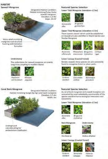 Due to urbanization and land reclamation, Sungei Pandan, once the largest mangrove habitat in Singapore, has witnessed a dramatic change of shoreline condition, which caused intertidal habitat loss and fragmentation. With current land use function and edge condition, the lifestyle around Sungei Pandan is detached from the original coastal characteristics, which leads to lack of public awareness for coastal habitats conservation. The project aims to revive coastal habitats under high-density urban context, by shaping a more diverse coastal edge along the Pandan River at the most representative and critical site of the whole area, the middle part between two canals, as a coastal park to benefit the whole community.