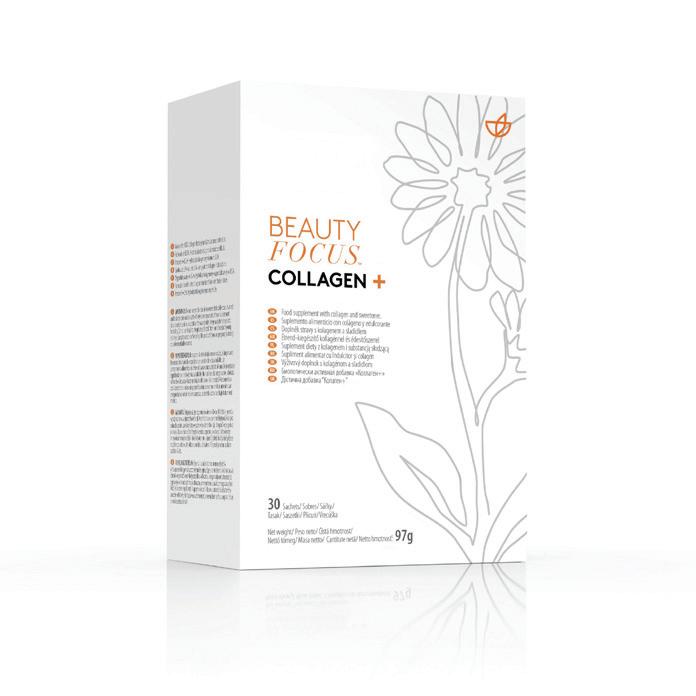 * Nu Skin ließ die kosmetische Wirksamkeit auf das Hautbild durch eine unabhängige klinische Studie untersuchen, in der 60 gesunde Erwachsene zwischen 40 und 60 Jahren 4 Monate lang einmal täglich Beauty Focus Collagen+ einnahmen. Die Studienergebnisse zeigen, dass sich das Gesamterscheinungsbild um 18 %, die Hautbeschaffenheit um 24 % und die Strahlkraft der Haut um 33 % gegenüber dem Ausgangswert verbessert hatte.