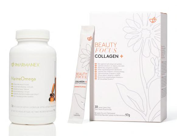 *Nu Skin commissioned a third party clinical study on 60 healthy adults between 40 and 60 years to evaluate the efficacy on cosmetic skin features taking Beauty Focus Collagen+ once a day for 4 months. The study results showanimprovementof18%inoverallappearance,24%intexture,and33% in skin radiance, as compared to baseline.