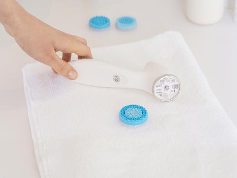 3 - Aplică Cleanser pe față 4 - Pornește dispozitivul: apasă butonul de alimentare
