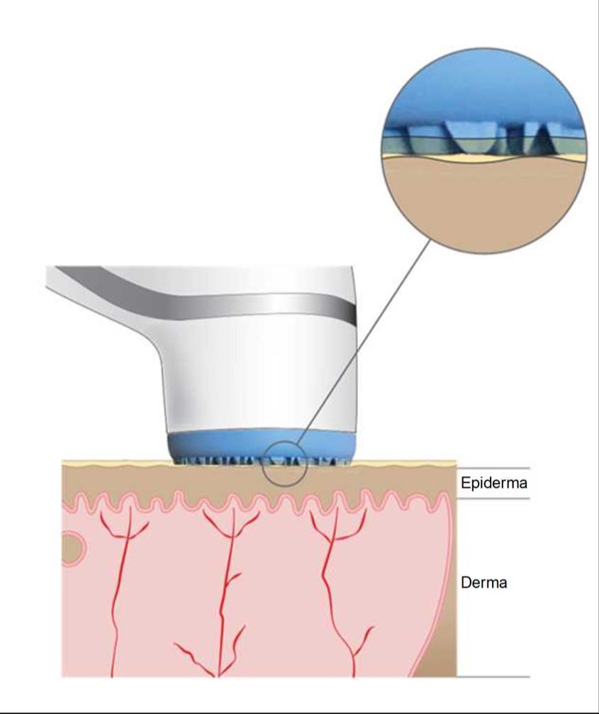 3 - Atașează Accent Head și pornește dispozitivul. Aplică pe piele cu mișcări lente și delicate. Evită plasarea vârfului direct pe pleoape.