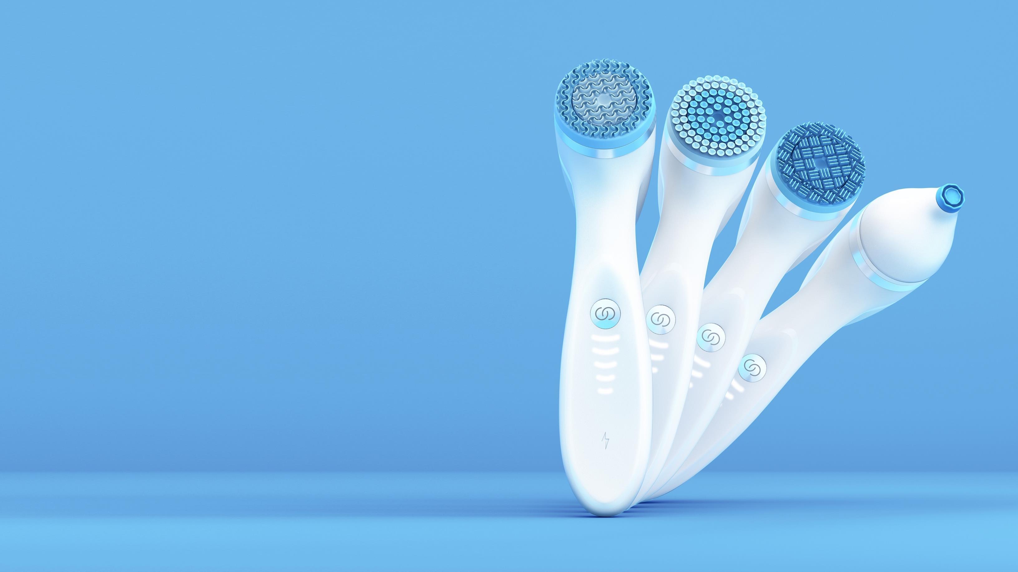 1- Fukta ansiktet 2- Kläm ut en mandelstor klick av produkten i handflatan (INTE på apparatens huvud)