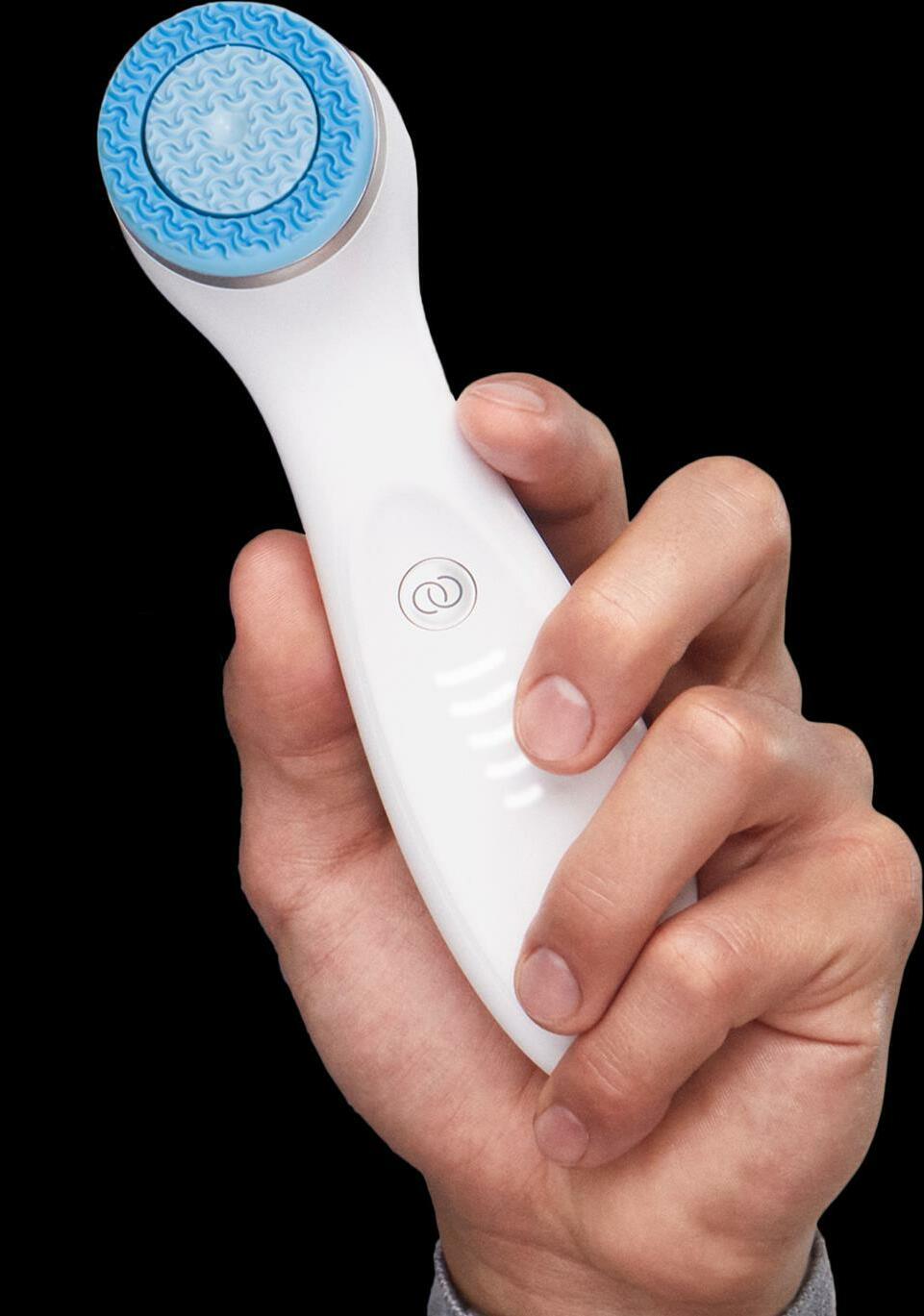 Potom, co jste si Přizpůsobené postupy péče o pleť uložili do zařízení, přepínejte Přizpůsobené postupy péče o pleť dvojitým stisknutím tlačítka Start. Nejdřív zařízení dvojitým stisknutím zapněte a zobrazí se bílá světélka. Po dalším dvojitém stisknutí se zobrazí se další barvy.