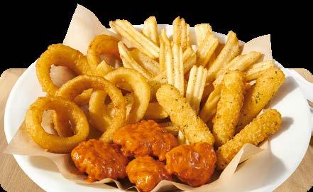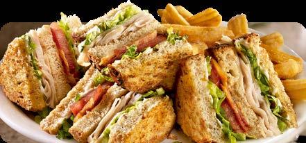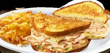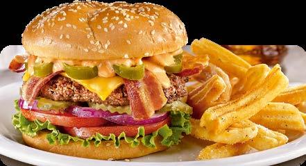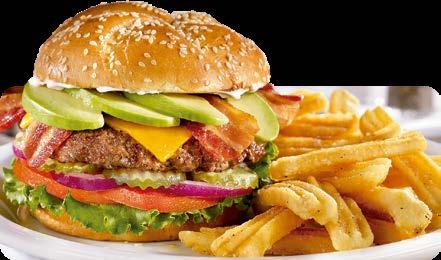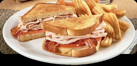 SERVIDOS CON TU ELECCIÓN DE PAPAS HASH BROWN, PAPAS FRITAS ONDULADAS, FRUTA DE LA TEMPORADA O VEGETALES CON ADEREZO.
