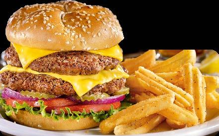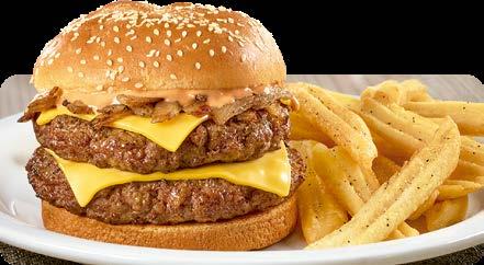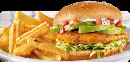 SERVIDAS CON TU ELECCIÓN DE PAPAS HASH BROWN, PAPAS FRITAS ONDULADAS, FRUTA DE LA TEMPORADA O VEGETALES CON ADEREZO. ELIGE PAN INTEGRAL EN CUALQUIER HAMBURGUESA