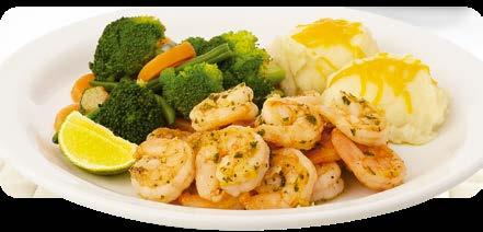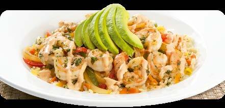 Jugosos y frescos camarones acompañados de aguacate fresco, pimientos y cebollas salteadas y salsa chipotle. Todo sobre una cama de arroz con vegetales pilaf. Servido con pico de gallo, crema ácida, queso cheddar rallado y tortillas de maíz. $12.25