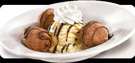 Tres Pancakes Puppies con azúcar y canela con una generosa porción de helado, hot fudge y crema batida. $3.75