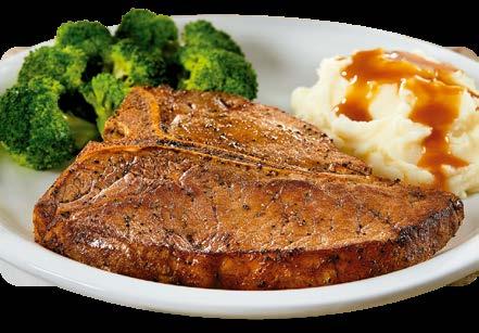 Suave y jugoso steak* de 13 onzas servido con dos acompañamientos de tu elección. $21.50