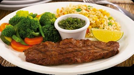 Jugoso y suave corte de res de 10 onzas asado a la plancha, servido con dos acompañamientos de tu elección y chimichurri $16.50