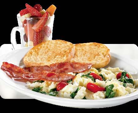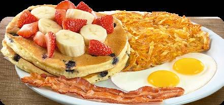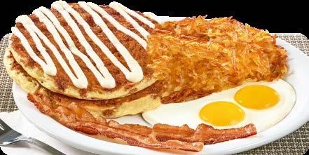 SERVIDOS CON DOS HUEVOS, PAPAS HASH BROWN, MÁS DOS TIRAS DE TOCINO O DOS SALCHICHAS.