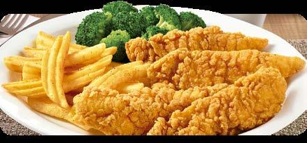 Cuatro filetes de pollo empanizados y doraditos servidos con dos acompañantes más tu elección de tortilla de maíz o pan de tu elección. $11.00
