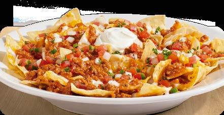 Crujientes tortillas cubiertas de salsa de queso, carne molida premium condimentada, pico de gallo, salsa, guacamole y crema. Elige porción entera o media porción. porción entera $10.25 media porción $7.50