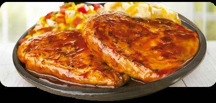 Dos pechugas de pollo asadas y cubiertas con nuestra salsa BBQ. Servidas con nuestro puré de papas, maíz y pan o tu elección de dos acompañamientos. $11.00