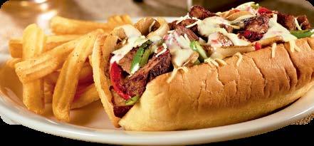 Pollo asado con champiñones, mezcla de pimientos y cebollas asadas, cubiertas con salsa de queso pepper jack y una mezcla de quesos rallados en pan hoagie a la plancha con una sabrosa mantequilla de ajo. $10.50