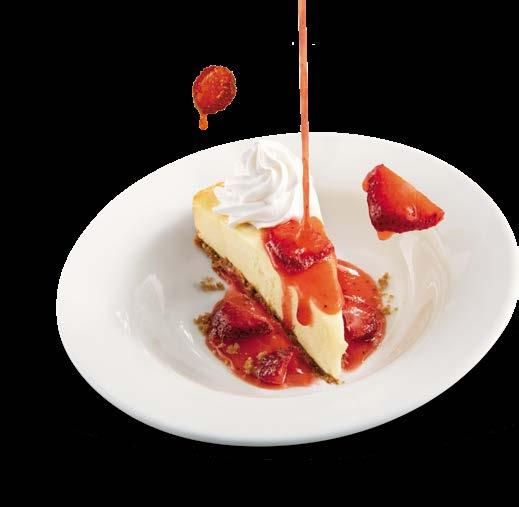 Cheesecake estilo New York en una crujiente base, servido solo o con un topping de fresa y crema batida. $5.75