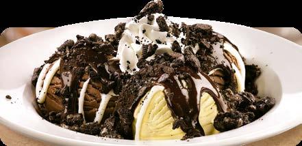 Tres generosas porciones de helado con un glaseado de queso crema, hot fudge, crema batida y pedacitos de galleta Oreo® $6.75 $4.75