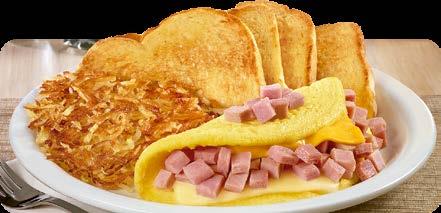 Omelette de tres huevos con trocitos de jamón y queso suizo y americano derretidos $6.75