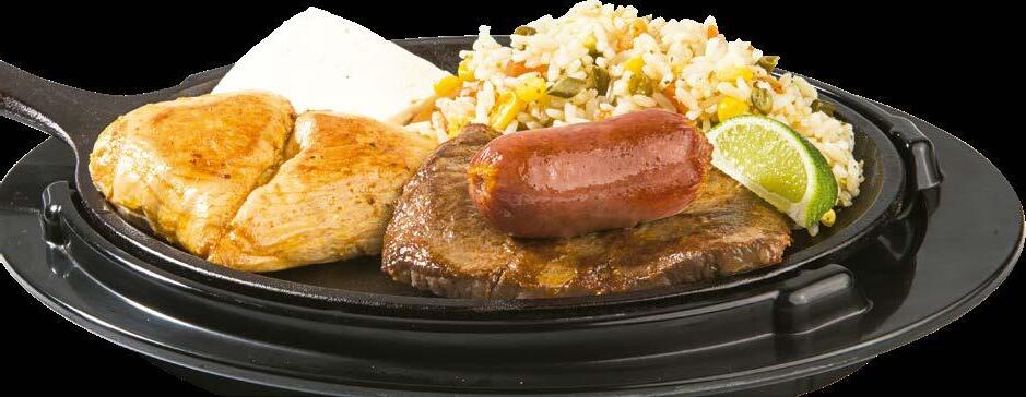 Típica parrillada al estilo nuestro con 5 onzas de churrasco, 5 onzas de pechuga de pollo a la plancha y chorizo criollo, todo cocinado a la perfección acompañado de arroz de tu elección, queso fresco, aguacate, crema ácida, pico de gallo, chimichurri y tortillas de maíz. $15.50