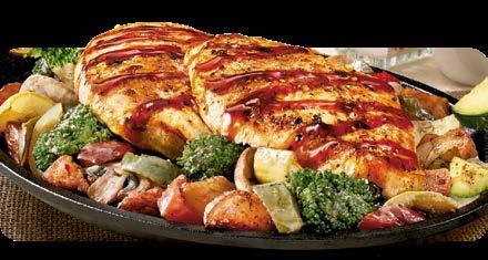 Dos crujientes pechugas de pollo sazonadas y asadas cubiertas con un delicioso y dulce glaseado de bourbon, coronadas con champiñones y pimientos asados al fuego. Servido con brócoli y papas rojas sazonadas. $12.50