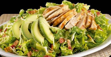 Elige entre una pechuga de pollo o un filete de salmón salvaje de Alaska, ambos perfectamente sazonados y asados, acompañados de aguacate fresco, tocino crujiente picado y quesos italianos rallados por encima de lechuga romana fresca, mezclado con aderezo caesar y acompañada de pan. $10.00