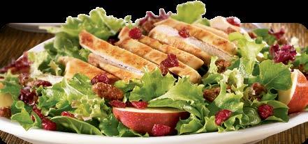 Pechuga de pollo asada, nueces glaseadas y arándanos secos, sobre lechuga mixta. Servida con aderezo de vinagre balsámico o tu elección de aderezo y pan. porción entera $8.50 media porción $7.50