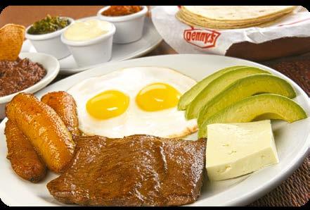 Elige entre un jugoso y suave churrasco de 5 onzas asado a la plancha o pechuga de pollo asada. Todo servido con plátano maduro frito, dos huevos,* frijoles fritos o rancheros, aguacate, queso crema, mantequilla, salsa ranchera y chimichurri. PECHUGA de pollo $10.25 CHURRASCO de 5 oz $14.25