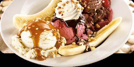 Fresca banana y tres generosas porciones de helado de vainilla, fresa y chocolate bañadas con caramelo, hot fudge y fresas. Cubiertas de crema batida y nueces. $6.75