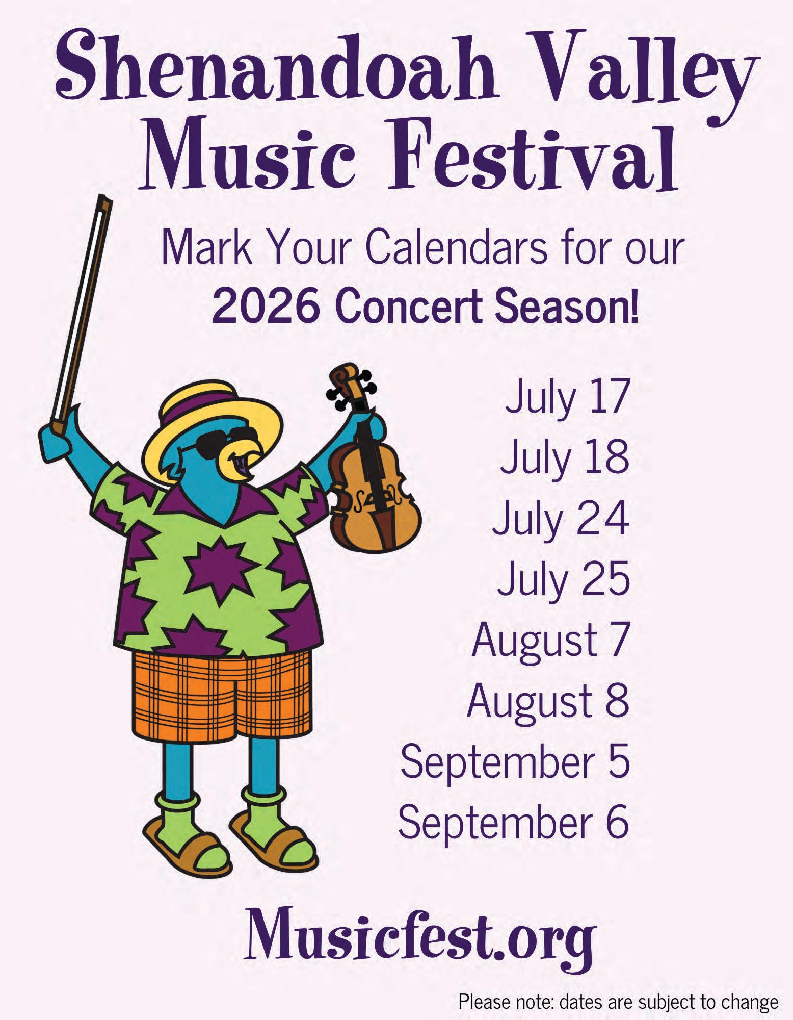 Thank you for being here and for making the Shenandoah Valley Music Festival a special part of your summer. We look forward to sharing the music with you.