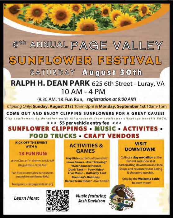 For Information, Call Page County Chamber of Commerce 743-3915 • 18 Campbell Street, Luray https://sites.google.com/a/pagecountyheritage.com/pcha/heritage-festival Buses Welcome • Sponsored by Page County Heritage Association