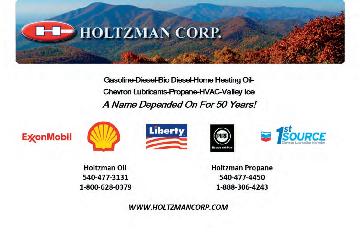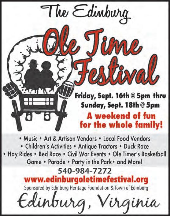 Here to help YOU plant your roots in a new home! Johnston & Rhodes Real Estate 540-459-9650 336 S. Main Street, Woodstock, VA 22664 Jane Johnson 540-335-1268 jmjrealtor31@gmail.com Licensed in VA #0225255401 Traditional Southern Hospitality at reasonable rates for the whole family! Stay with us for a concert or bring the family for a break and let us do the cooking. All meals included with your stay. For more information check Shrine Mont’s Website www.shrinemont.com Welcome to Shrine Mont Cook’s Automotive Repair & Tire Center Rt. 11 North, Landfill Rd. Edinburg • 984-4444 Cook’s Store & Exxon Service Center Rt. 42 & I-81 (Exit 283), Woodstock • 459-4500 OVER 50 YEARS IN BUSINESS • FAMILY OWNED & OPERATED & Exxon Service Center • BREAKFAST READY AT 5:30AM • DAILY WEEKDAY LUNCH SPECIALS • COOPER’S EXPRESS CHICKEN For Lunch or Dinner (Large Orders & Sides Available) • FULL AUTOMOTIVE REPAIR & MAINTENANCE • TIRES AND ALIGNMENTS • BATTERY AND ELECTRICAL SYSTEM CHECK • STATE INSPECTIONS Cook’s Country Store Great For A Picnic On The Go!