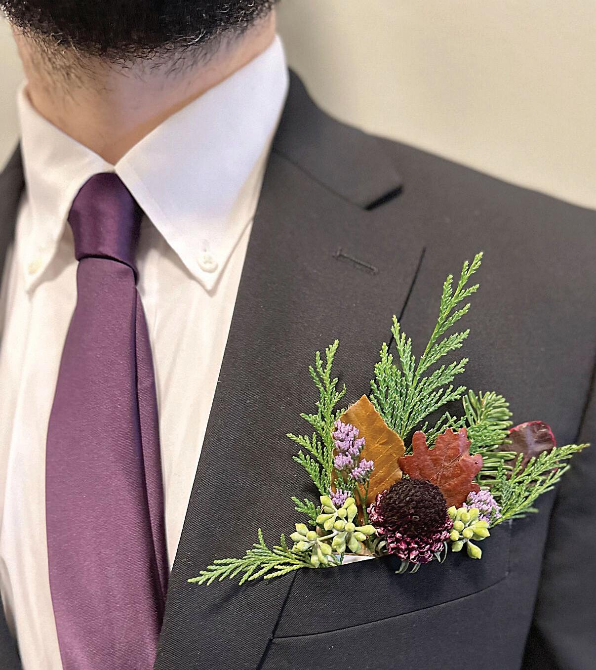 Bonnet said that if couples prefer the classic boutonniere look, they might consider asking their florist to use magnets so that the boutonniere can be attached without pins.
