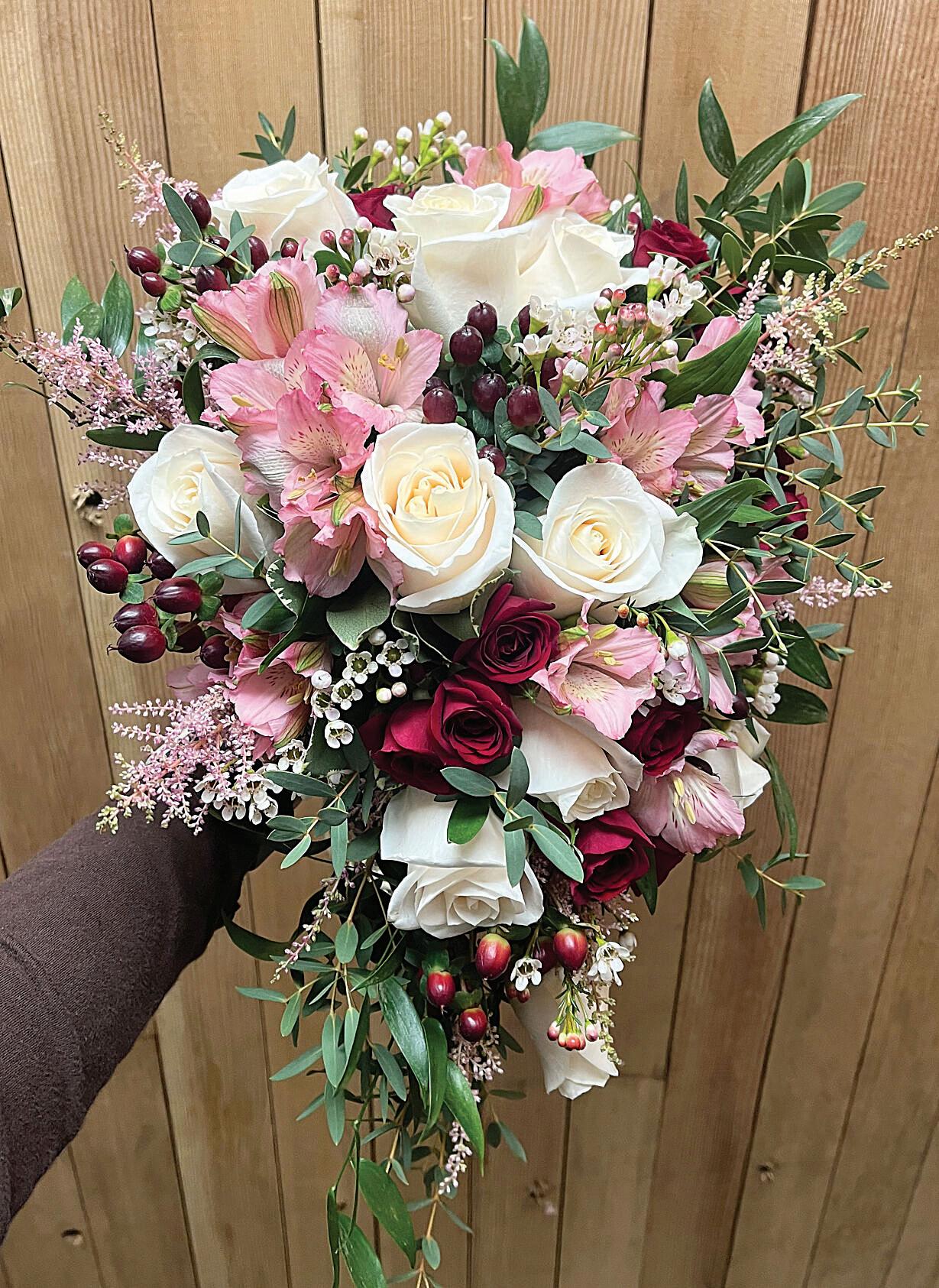 Cascading bridal bouquets and pocket boutonnieres are among the top trends in wedding flowers for this year, according to Katie Bonnet, owner of Fussell Florist on 2nd Street in Front Royal.