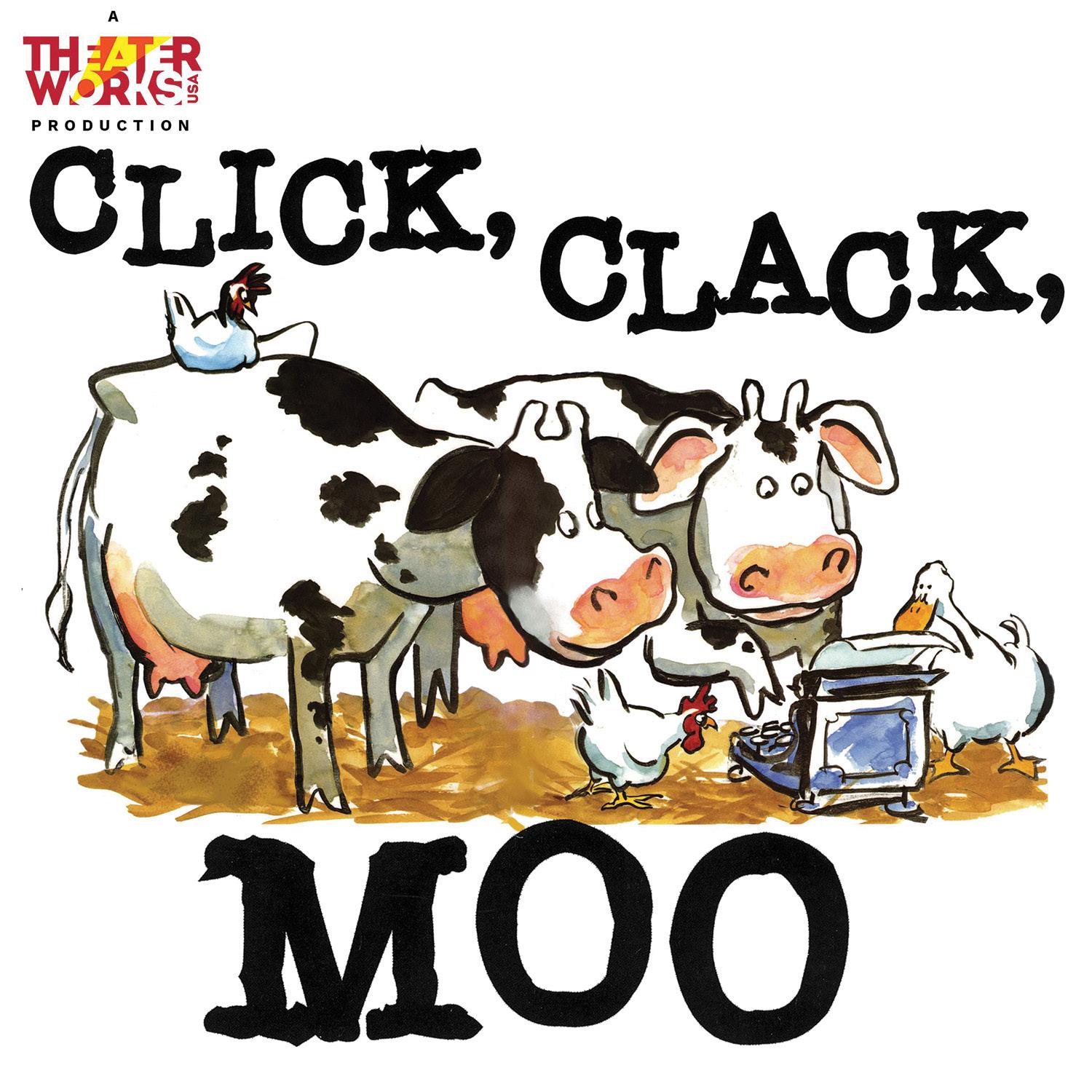 Click, Clack, Moo is written by Billy Aronson (book), Kevin Del Aguila (lyrics), and Brad Alexander (music); based on the book by Doreen Cronin with illustrations by Betsy Lewin. Original direction by John Rando (Broadway: On the Town, Tony Nom; Urinetown, Tony Award) and original choreography by Wendy Seyb. Orchestrations by Brad Alexander, set design by Beowulf Boritt (Broadway: Be More Chill; Act 1, Tony Award), and costume design by Lora LaVon (Broadway: Urinetown)