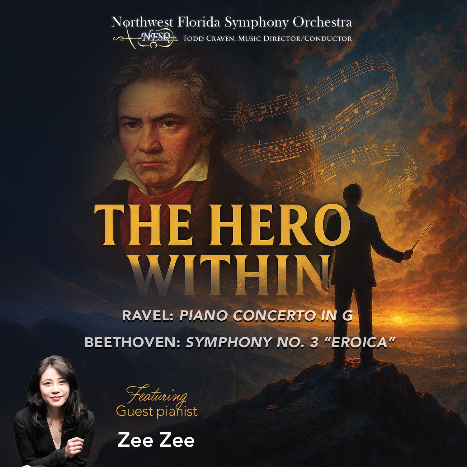 The program begins with Valerie Coleman’s Seven O’Clock Shout, a vibrant tribute to frontline heroes of the pandemic. Ravel’s dazzling Piano Concerto in G follows, featuring internationally acclaimed pianist Zhang Zuo. The evening culminates in Beethoven’s groundbreaking Eroica Symphony, a bold and revolutionary portrait of heroism in all its complexity.