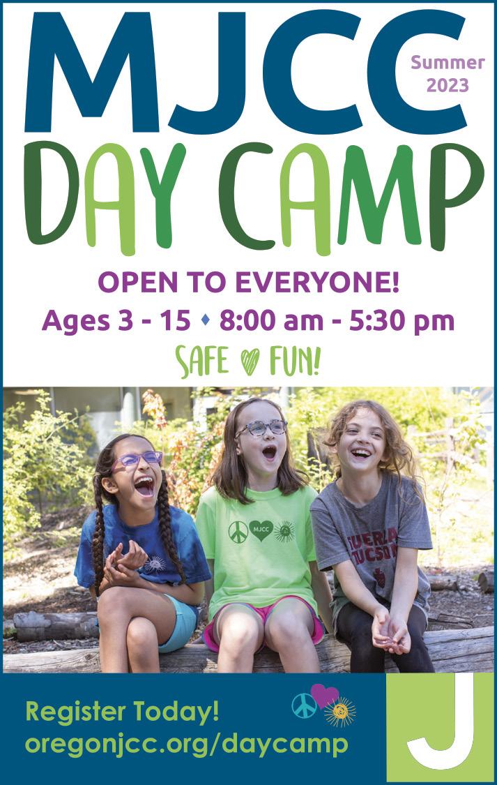Have an AWESOME summer at MJCC Day Camp! Health + safety is their top priority. Enjoy quality, ageappropriate programs that are super fun: swimming, cooking, Jewish culture, art, + more! Flexible options 8:00 am – 5:30 pm. Open to everyone ages 3-15. oregonjcc.org/daycamp