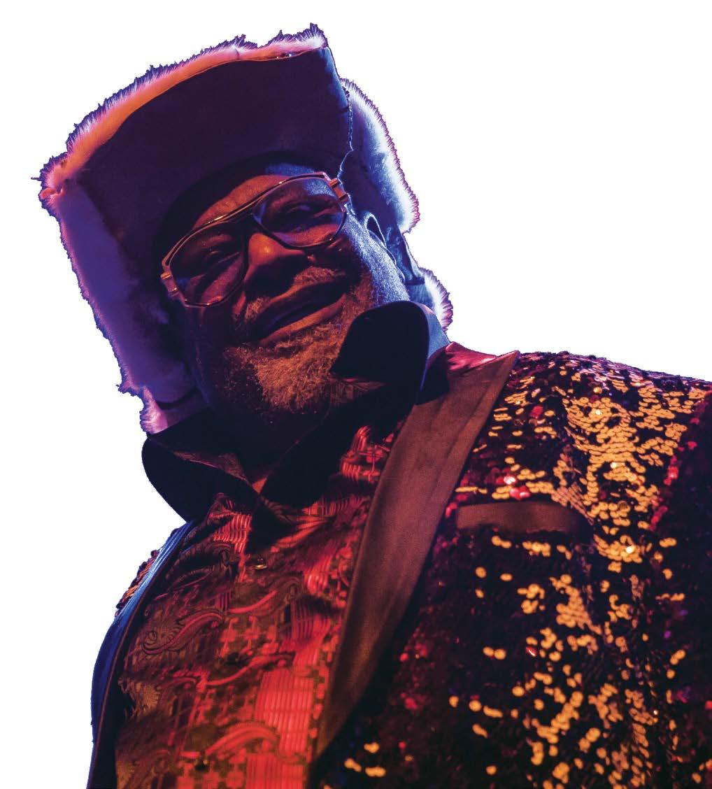 Over the decades, P-Funk have received many honors, most notably induction into the Rock and Roll Hall of Fame and a Grammy Lifetime Achievement Award. Clinton has been awarded several honorary degrees (making Dr. Funkenstein an actual doctor) and a star on the Hollywood Walk of Fame. In 2011, “Mothership Connection” was added to the Library of Congress, and a recreation of the Mothership now resides at the Smithsonian’s National Museum of African American History and Culture.